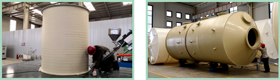 進行PPH錐形一擠繞線技藝生產加工制成而成的全塑結構設計的耐結垢塔器或自然壓儲存罐;轉變了家具板首次擠壓成型的舊加工過程。